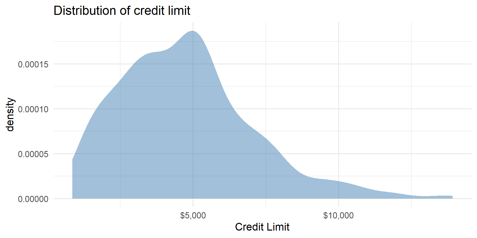 gf_labs(title = "Distribution of credit limit",