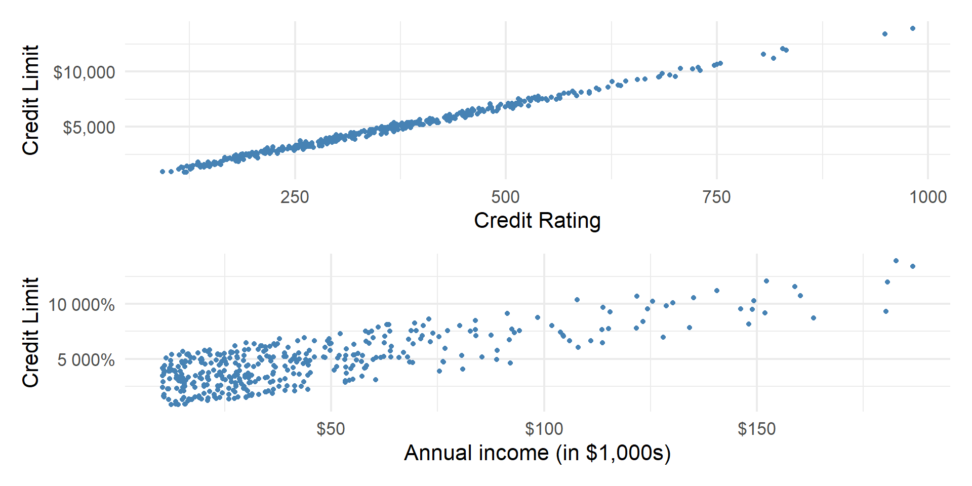 gf_point(Limit ~ Rating, color = "steelblue") |>